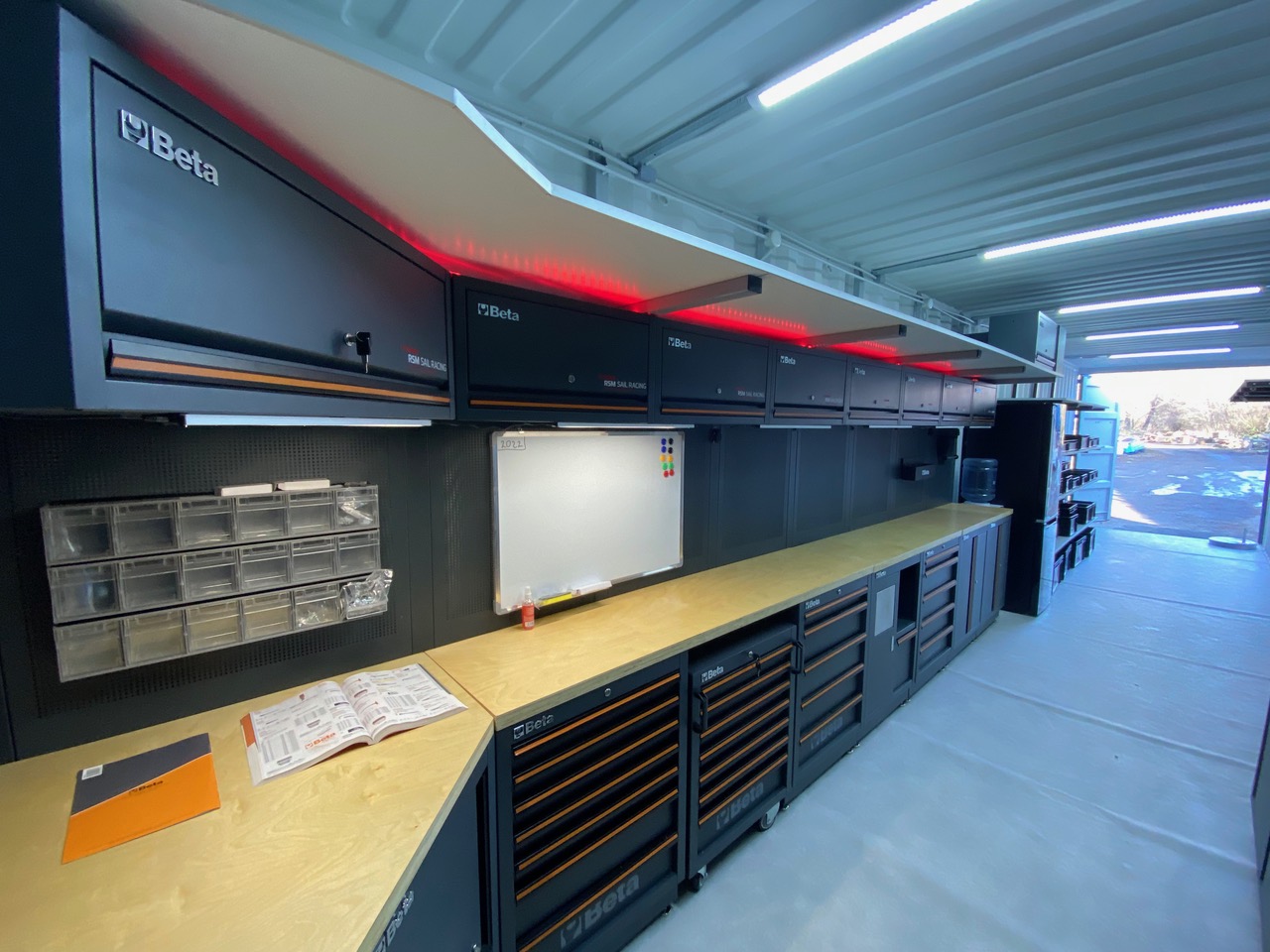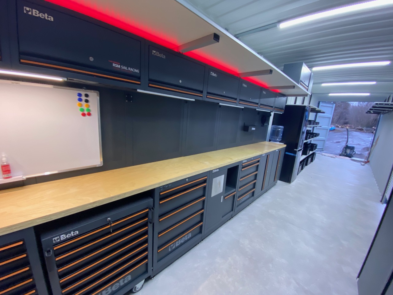 Externally, the eye-catching container proudly displays the RSM Sail Racing branding, making it not just a workshop but a mobile technical hub that plays a crucial role in the team’s success. Whether it’s pre-season preparation, rapid race-day repairs, or complete boat refurbishments, this mobile service container provides a solution for every challenge.
