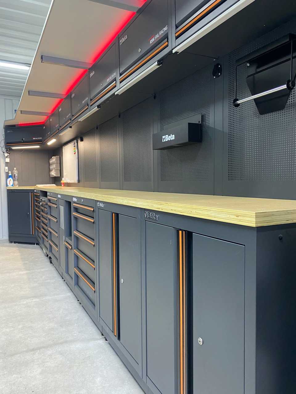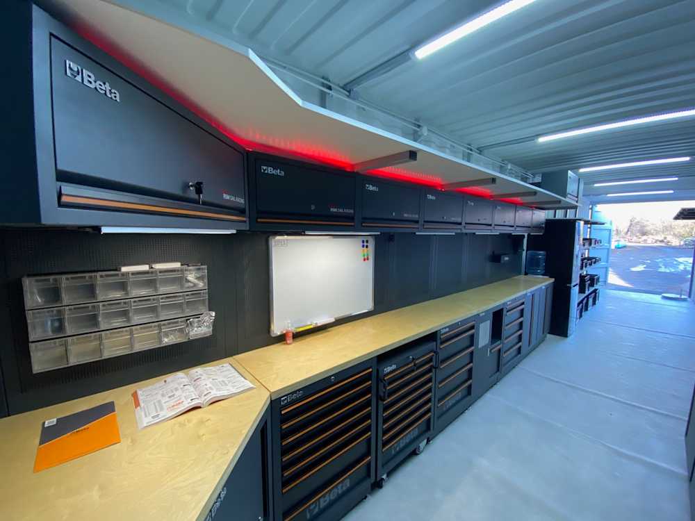 A belső tér gondosan kialakított, modern szerszám- és tárolórendszerekkel van felszerelve, amely biztosítja a szerelők hatékony munkáját. A Beta szerszámok, a hosszú munkapad és az átgondolt világítás mind azt szolgálják, hogy a hajók felkészítése a legmagasabb szinten történjen.